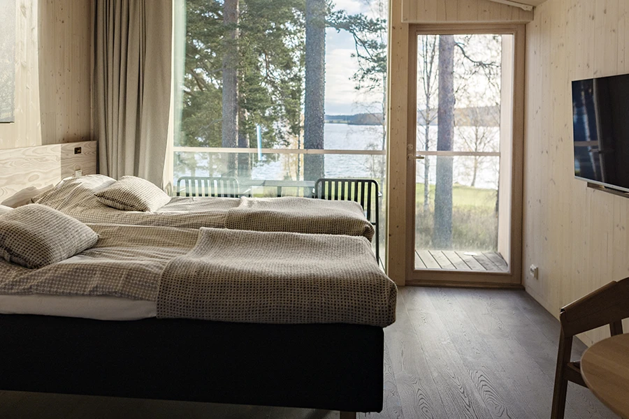 Zimmer: Das Resort besteht aus den Unterkünften Törölä, Uni Villa Studios und Uni Villa Suiten. Törölä ist ein historisches Wohnhaus aus den 1940er Jahren, das komplett renoviert und im Jahr 2023 in Betrieb genommen wurde. Es verleiht skandinavischen Charme. Die 17 modernen Doppelzimmer und das eine Familienapartment verfügen jeweils über ein Badezimmer mit Dusche und WC, einen Kühlschrank, einen Wasserkocher und einen Fernseher. Die exquisiten Uni Villa Studios (25 m²) bieten modernen Scandi-Chic und verfügen über ein Badezimmer, eine Mikrowelle, einen Wasserkocher, einen TV, WLAN und einen Blick auf den Golfplatz und die umliegende Natur. Die 40 m² großen Uni Villa Suiten sind auf höchsten Komfort und Wohlbefinden ausgelegt. Sie verfügen über ein modernes Badezimmer, eine eigene Sauna, eine Küche mit kleinem Kühlschrank, Wasserkocher, Kaffeemaschine und Klimaanlage.
